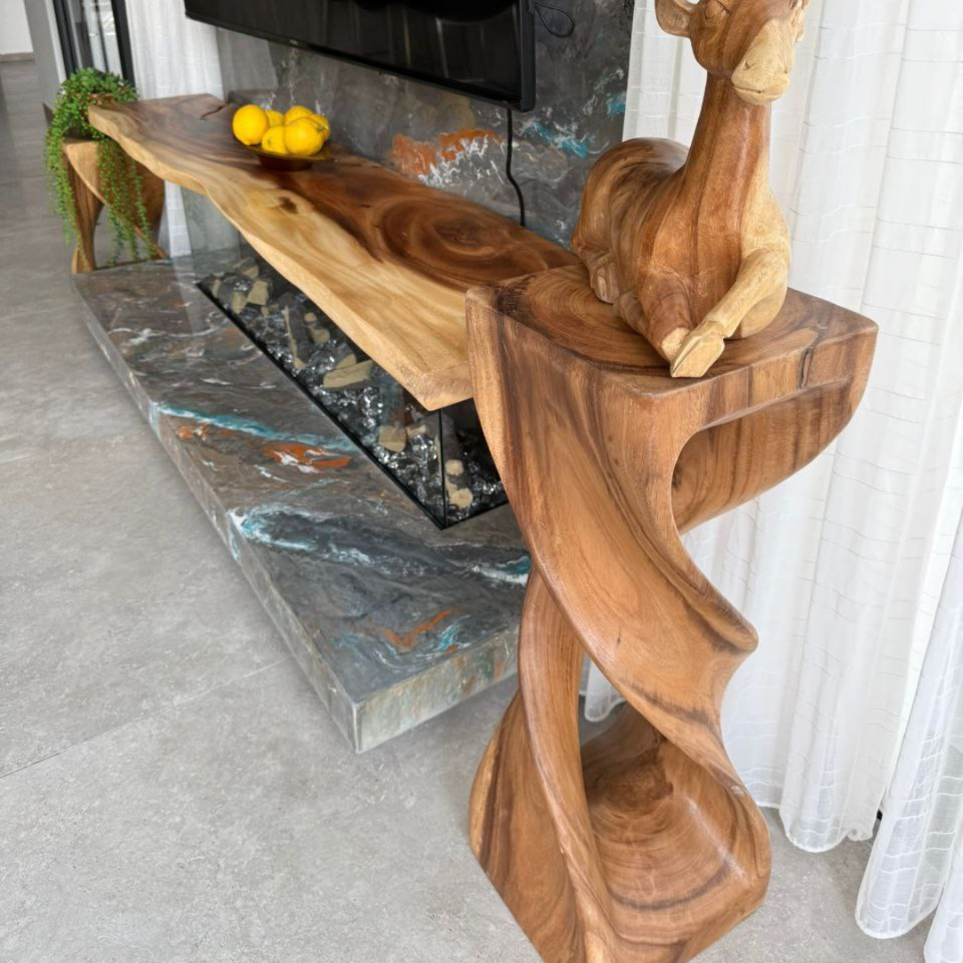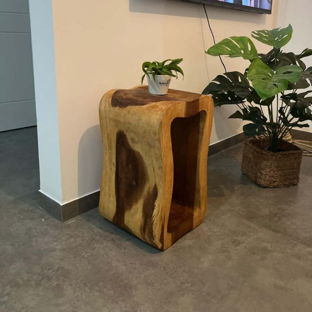 מעמדים דקורטיבים מעוצבים בקפידה מעץ מלא טבעי.