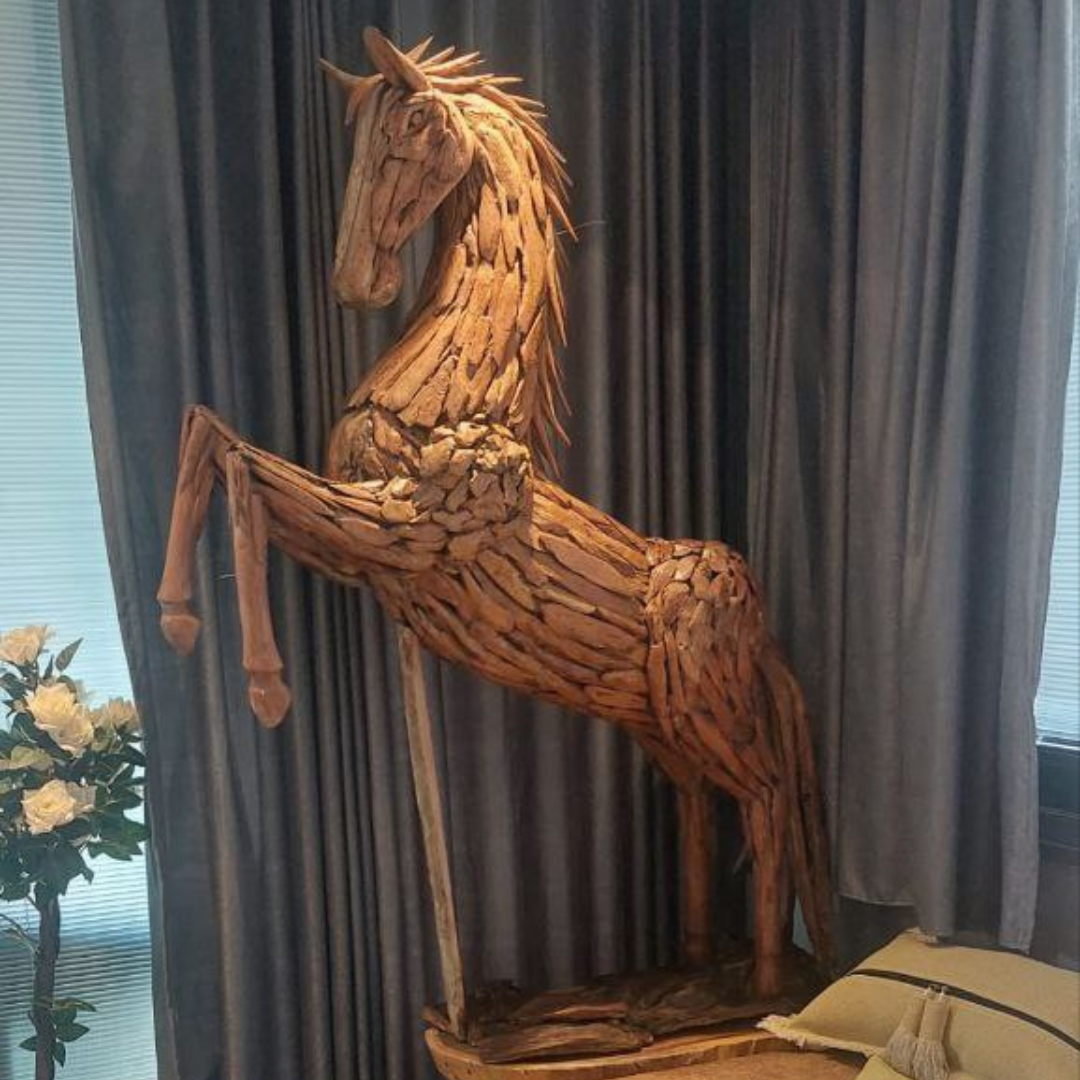 כל פסל חיה מגולף בעבודת יד מעץ טיק בורמזי נדיר ועמיד, עם רמת גימור מושלמת.